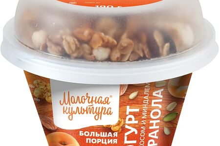 Йогурт Молочная культура Абрикос-Миндаль с гранолой и изюмом 2.7-3.5% 190г доставка
