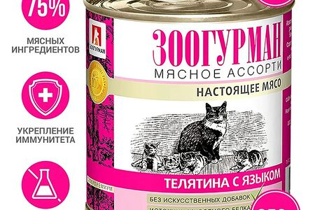 Влажный корм для кошек Зоогурман Мясное ассорти Телятина с языком 250г доставка