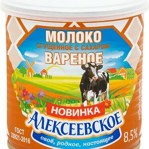 Молоко сгущенное Алексеевское 8.5% 650г производится по традиционному рецепту из отборного цельного молока и сахара. Смесь подвергается сгущению в специальных вакуум-выпарных аппаратах, затем охлаждается и расфасовывается в удобную тару. Сгущенное молоко можно добавлять в чай или кофе, подавать к блинчикам и оладьям, делать сладкие бутерброды, использовать для приготовления кондитерских кремов (творожного, сметанного, масляного) и зеркальной глазури. Упаковка дой-пак обеспечивает удобное использование и хранение продукта.