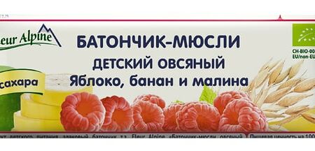 Батончик-мюсли Fleur Alpine овсяный детский Яблоко-Банан-Малина 23г доставка