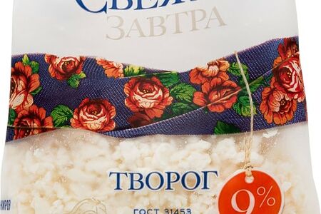 Творог Свежее Завтра 9% 400г 100% натуральный продукт, изготовленный из отборного коровьего молока и закваски из молочнокислых бактерий. Это ценный источник витаминов, кальция, фосфора и других элементов, необходимых человеческому организму для поддержания здоровья и полноценной физической активности. Надежная упаковка с системой многократного открывания и закрывания позволяет сохранить свежесть и отменный вкус творога в течение всего срока годности. Свежее Завтра классическая молочная продукция высочайшего качества, произведенная на самом современном оборудовании. Производитель гарантирует чистоту, безопасность и натуральность, а также отсутствие ГМО и антибиотиков.