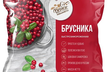 Брусника Всегда пожалуйста быстрозамороженная 300г 100% натуральная продукция, прошедшая многоэтапный контроль качества. Спелые ягоды бережно собирают, очищают от мусора, промывают, а затем подвергают шоковой заморозке. Этот метод замораживания считается самым оптимальным, ведь он позволяет сохранить в плодах естественный вкус и максимум ценных веществ. Брусника обогащает организм человека витаминами, микроэлементами и антиоксидантами, улучшает работу ЖКТ, оказывает антисептическое действие и предотвращает развитие атеросклероза. Ее можно использовать для приготовления киселей, морсов, компотов, выпечки и варенья. Ягоды идеально впишутся в рацион вегетарианцев, веганов, сторонников диетического питания, постящихся.