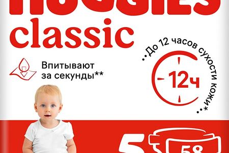 Подгузники Huggies Classic 11-25кг 5 размер 58 шт доставка