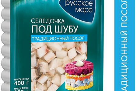 Сельдь Русское море Под шубу филе-кусочки слабосоленые 400г идеальное решение для приготовления традиционного салата Сельдь под шубой для вашего праздничного стола. Вам больше не придется тратить много времени на разделку, чистку и нарезку селедки, ведь все уже сделано за вас. Ароматное, упругое, сочное, в меру соленое рыбное филе, нарезанное маленькими кусочками, можно также использовать для приготовления закусок, форшмака, паштетов. Селедка вкусная и доступная рыба, служащая источником витаминов, минералов, ценных аминокислот, Омега-3 и Омега-6. Она легко усваивается, способствует улучшению работы сердечно-сосудистой системы, помогает укрепить иммунитет. Вакуумная упаковка надежно сохраняет свежесть продукции в пределах всего срока годности.