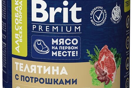 Влажный корм для собак Brit Premium Телятина с потрошками 750г доставка
