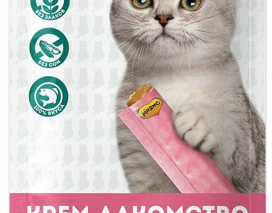 Крем-лакомство для кошек Мнямс с тунцом Кацуо 15г*4шт - это вкусное и полезное угощение, разработанное для взрослых кошек и котят от 4 месяцев. Оно изготовлено из натуральных ингредиентов с использованием темно-красного мяса деликатесного тунца, что повышает вкусовую привлекательность. Нежнейшая кремовая консистенция лакомства позволяет подавать его в качестве угощения или аппетитного соуса для основного рациона. Не содержит злаки, сою и ароматизаторы. Рекомендуемая суточная норма: для котят от 4 месяцев - 1-2 пакетика, для взрослых кошек - 2-6 пакетиков.
