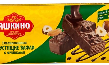Вафли Яшкино глазированные с орешками 200г доставка