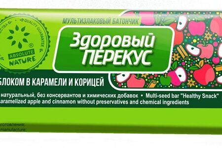 Батончик Absolute Nature мультизлаковый Здоровый перекус с яблоком в карамели и корицей 55г доставка