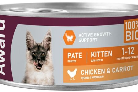 Влажный корм для котят Award Паштет из курицы с морковью 100г доставка