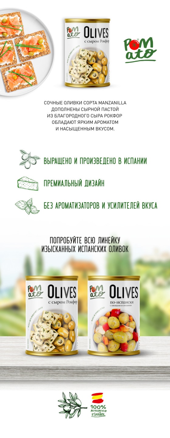 Оливки POMATO с сыром рокфор 300г доставка