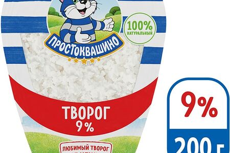 Творог Простоквашино 9% 200г – вкусный и полезный продукт, который производится по особой технологии из пастеризованного молока и закваски молочнокислых культур. После свертывания из творога отделяется сыворотка, продукт помещается под пресс и затем охлаждается. Структура получается плотная, суховатая, с минимальной кислинкой. Такой творог хорошо подходит для приготовления сырников и запеканки. Молочная продукция ТМ «Простоквашино» имеет несколько гарантий качества: она готовится из 100% натурального молока с ближайших ферм, проходит строгую проверку на отсутствие антибиотиков, не содержит растительных жиров. Упаковка – пластиковая ванночка с герметичной крышкой.