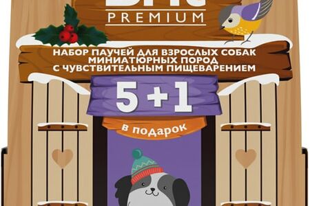 Набор влажного корма для собак Brit Premium для миниатюрных с чувствительным пищеварением Ягненок с морковью в соусе 85г*5+1шт доставка