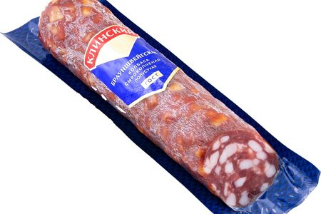 Колбаса Клинский Брауншвейгская сырокопченая 300г приготовлена строго по ГОСТу из отборной говядины и свинины с добавлением пряных специй. В отличие от многих сырокопченых колбас, эта имеет характерный срез темного винного цвета с вкраплениями крупных фрагментов шпика. Вся продукция Клинского мясоперерабатывающего комбината проходит тщательный контроль качества на всех этапах производства, готовится из отборных натуральных ингредиентов по рецептам ГОСТ или авторским рецептам местных технологов. Вакуумная упаковка.