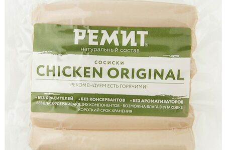 Сосиски Ремит Chicken Original 180г 100% натуральный продукт, входящий в ассортимент серии РЕМИТ Organic. Важное достоинство этой линейки чистый состав без искусственных добавок, красителей, ароматизаторов, консервантов и ГМО. Сосиски изготовлены из нежнейшего куриного мяса с добавлением натуральных пряностей. Имеют пониженное содержание жира, поэтому относятся к диетической продукции. Идеально подходят для приверженцев здорового питания. Обладают приятным вкусом, в котором гармонично переплетаются легкие ноты мускатного ореха, чеснока и сельдерея. Можно подать их на обед в сочетании с картофельным пюре или запеченными овощами. Вакуумная упаковка надежно сохраняет свежесть и вкусовые свойства в пределах всего срока годности.