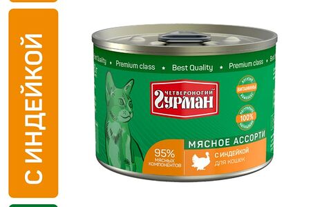 Влажный корм для кошек Четвероногий Гурман Мясное ассорти с индейкой 190г доставка