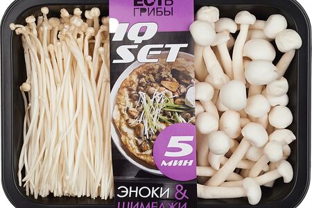 Грибной микс Эноки и Шимеджи 150г – экологически чистые деликатесные грибы, которые непременно порадуют всех гурманов. Эноки обладают тонким ароматом, слегка специфическим вкусом и упругой, хрустящей текстурой. Гармонично сочетаются со свининой, курицей, говядиной, соевым соусом, рыбой, яйцами, креветками, овощами, лапшой. Широко используются в азиатской кухне. Шимеджи имеют уникальный сладко-сливочный вкус и крепкую структуру. Их можно варить, тушить, жарить, добавлять в соусы и супы, мариновать, солить, сушить. И те, и другие грибы богаты железом, фосфором, калием, цинком, витаминами (РР и группы В), аминокислотами и клетчаткой, благодаря чему оказывают благотворное влияние на здоровье человека. Микс хорошо впишется в диетический рацион и поможет укрепить иммунную систему.