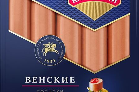 Сосиски Клинский Венские 470г прекрасное решение для быстрого, но сытного завтрака, обеда, ужина или перекуса в течение дня. Изготовлены по фирменному рецепту из нежной свиной грудинки и говядины. Мускатный орех придает колбасным изделиям легкую пикантность, а приятный аромат копчения делает их особенно аппетитными. Рекомендуется подавать в сочетании с картофельным пюре или макаронами, а также использовать для приготовления изумительной выпечки и хот-догов. Вакуумная упаковка надежно сохраняет свежесть в течение всего срока годности. Клинский мясокомбинат с 1939 года радует потребителей вкусными колбасами, сосисками и мясными деликатесами. Предприятие ежегодно получает высшие награды за качество продукции на всероссийских профильных конкурсах.