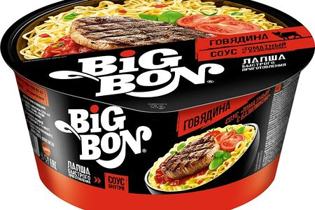 Лапша Big Bon Говядина и соус томатный с базиликом 85г доставка