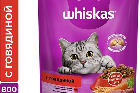 Сухой корм для кошек Whiskas Вкусные подушечки с нежным паштетом Аппетитный обед полнорационный с говядиной 800г доставка