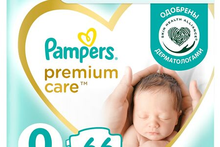 Подгузники для новорожденных Pampers Premium Care 0 размер / 1.5-2.5кг ультрамягкие 66шт доставка