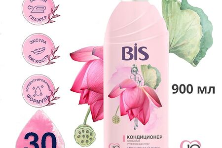 Bis — это линейка эффективных кондиционеров для белья. IQ-формула восстановления содержит комплекс целлюлаз, который отвечает за восстановление волокон ткани: разглаживание, смягчение, предотвращение появления и удаление катышков и ворсинок, что помогает продлить жизнь любимым вещам. Свежий аромат заключает в себе ноты водяной прохлады и белого водяного лотоса с мягкими оттенками тропических фруктов и нежных весенних цветов. Обладает антистатическим эффектом. Облегчает глажение. Экономичный расход — 30 стирок.