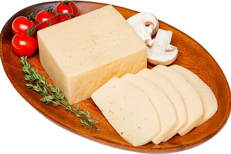 Сыр Российский классический полутвердый сыр, произведенный в России из пастеризованного молока с добавлением закваски и других вспомогательных компонентов. Имеет светло-желтый цвет и плотную текстуру. На срезе можно увидеть красивое кружево из хаотично расположенных мелких глазков. Обладает приятным сливочным вкусом. Прекрасно подходит для приготовления горячих и холодных бутербродов, запеканок, вторых блюд, закусок, салатов. Сыр вкусный и полезный продукт, который служит источником ценных аминокислот, белков, кальция и калия. Его употребление способствует укреплению костей и зубов. Является отличным вариантом для сытного перекуса в любое время дня, достойно смотрится в составе сырной тарелки.