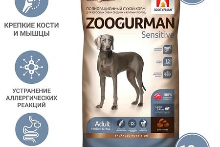 Сухой корм для собак Зоогурман Sensitive Lamb Rice с ягненком и рисом 12кг доставка