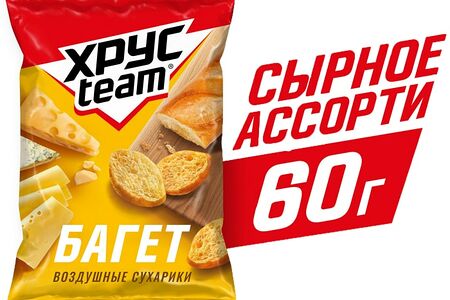 Сухарики Хрусteam Багет Сырное ассорти 60г - это оригинальные хрустящие снеки с воздушной пористой структурой и изысканным вкусом благородных сыров. Из-за своей овальной формы внешне они похожи на тонко нарезанные ломтики миниатюрного багета. Сухарики приятно хрустят и с легкостью раскусываются. Их можно употреблять в качестве вкусного и сытного перекуса, легкой закуски к прохладительным напиткам, подавать в качестве гренок к крем-супу, использовать для приготовления знаменитого салата Цезарь. Если перемолоть их, то у вас получится роскошная панировка для птицы или рыбы.