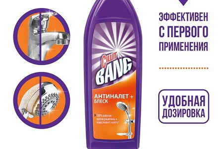 Средство чистящее Cillit Bang от налета и грязи 750мл устраняет даже самые стойкие загрязнения. Формула легко удаляет известковый налет, мыльные разводы, въевшуюся грязь и ржавчину во всем доме. Эффективен при уборке следующих поверхностей: раковина, туалет, душевая кабина, ванна, кафель, акрил, кран, хромированные и эмалированные поверхности, нержавеющая сталь и керамика, пластмасса.