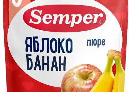 Пюре Semper Яблоко банан с 6 месяцев 90г – 100% натуральный продукт, изготовленный из отборных фруктов. Подходит для детей с 6-месячного возраста. Обладает нежной консистенцией и приятным вкусом. Состав обогащен витамином С, который укрепляет иммунитет и способствует лучшему усвоению железа из яблока. Пюре не содержит сахара, крахмала, ГМО, искусственных красителей, ароматизаторов и консервантов. Мягкая упаковка удобна и практична, ведь ее можно легко взять с собой на прогулку, в гости или в поездку. Кушать лакомство малыш сможет самостоятельно – для этого предусмотрен специальный дозатор. Semper – это безопасное детское питание премиум-класса, произведенное в соответствии со шведскими стандартами качества.