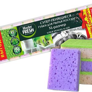 Губки для мытья посуды Master Fresh Black профилированные 96*70*42мм 2шт прекрасно подходят для очищения всех видов поверхностей. Изготовлены из поролона высокой плотности и абразивной фибры, позволяющей без труда справиться даже с самыми сложными загрязнениями. Благодаря суперпрочной склейке слоев отличаются долговечностью. Хорошо вспенивают моющее средство, легко промываются водой. Губки имеют выемки для пальцев, что позволяет сохранить ваш маникюр. В упаковке 2 штуки. Миссия производителя продукции торговой марки «Master Fresh»: изготовление и продвижение качественных и доступных товаров повседневного спроса, делающих жизнь потребителей проще и легче.