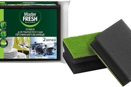 Губки для мытья посуды Master Fresh Black профилированные 96*70*42мм 2шт доставка