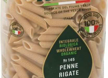 Органические цельнозерновые акароны Delverde Penne Rigate Biologica №145 500г приготовлены из муки твердых сортов пшеницы и кристально чистой воды. Родниковая, холодная от природы вода помогает сохранить уникальный вкус пшеницы. Благодаря старинному способу приготовления пасты с помощью бронзовой пресс-формы поверхность макаронных изделий получается шершавой, и за счет этого они лучше удерживают соус. Сушка при низких температурах сохраняет полезные свойства пшеничного зерна. Чтобы получить идеальный вкус al dente, следует варить перья в соответствии с рекомендациями, указанными на упаковке. Penne (перья) могут быть самостоятельным блюдом с добавлением томатно-базиликового соуса и сыра, а могут употребляться в качестве гарнира. Перышки добавляют также в различные салаты.