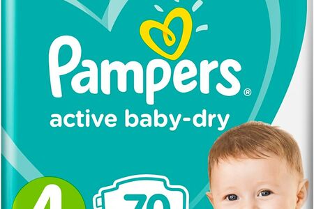 Подгузники Pampers Active Baby-Dry созданы с заботой о здоровье кожи! Благодаря циркуляции воздуха внутри подгузника кожа малыша остается сухой и защищенной от опрелостей, а дополнительный внутренний слой с жемчужными микрогранулами впитывает и надежно удерживает влагу, обеспечивая сухость до 12 часов. Уникальные воздушные каналы подарят коже малыша сухость на всю ночь, а забавные рисунки на внешней стороне помогут сделать процесс смены подгузника легким и веселым — как для малыша, так и для мамы. Особенности наших подгузников l Active Baby-Dry: комфорт и защита кожи до 12 часов; до 100% защиты от протеканий; тянущиеся боковые застежки, обеспечивающие комфортную посадку; внутренний слой с жемчужными микрогранулами, впитывающий влагу и надежно удерживающий ее внутри; дополнительный слой, помогающий равномерно распределять влагу внутри подгузника; одобрены независимой международной ассоциацией дерматологов. Детские подгузники 4-го размера идеальны для мальчиков и девочек весом 9-14 кг (70 шт.). Для комфорта и защиты кожи малыша используйте вместе с детскими влажными салфетками Pampers Sensitive с уникальной формулой, которая поддерживает естественный уровень pH, помогая предотвратить раздражение кожи малыша.