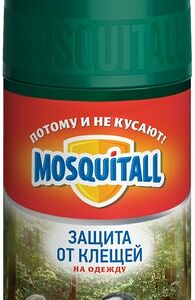 Аэрозоль Mosquitall Защита от клещей 100мл является мощным специализированным средством индивидуальной защиты от лесных и таежных клещей. Обладает расширенным спектром действия: уничтожает клещей и надежно отпугивает комаров и других кровососущих насекомых. Средство необратимо парализует дыхательную систему клеща, в результате чего клещ погибает в течение нескольких минут, даже если он успевает переползти с обработанной одежды на кожу. Активная формула — совместная разработка компании с НИИ Дезинфектологии. Двойное и активное действие: убивает лесных и таежных клещей, отпугивает комаров, мокрецов, москитов. Средство наносится только на одежду и снаряжение (рюкзаки, палатки и так далее). Не оставляет следов на одежде и снаряжении. Длительное время защиты обработанной одежды: 10–15 дней. Безопасно для людей и домашних животных. Эффективность средства подтверждена НИИ Дезинфектологии.