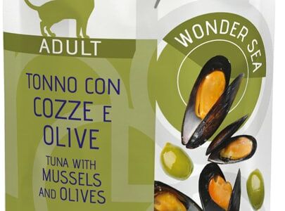 Влажный корм для кошек Monge Supreme Adult cat с мидиями и оливками 80г - это натуральное питание для взрослых кошек всех пород. В его основе лежит мясо тунца, который является источником белка высокой пищевой ценности. Корм обогащен такими суперфудами, как мидии и оливки, а также витамином Е и ФОС. Все ингредиенты приготовлены на пару. Не содержит злаков, ГМО, искусственных красителей и ароматизаторов. Суточная норма кормления: для кошки весом 4 кг - 2-3 пауча.