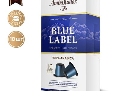 Ambassador Blue Label в капсулах — это насыщенный сбалансированный вкус с фруктовыми нотками в послевкусии. 100%-ная арабика, бленд из различных сортов арабики с богатым сбалансированным вкусом, где преобладают ноты шоколада и фундука, а в послевкусии слегка ощущается красный виноград. Предназначен для приготовления кофе в капсульной кофемашине системы Nespresso.