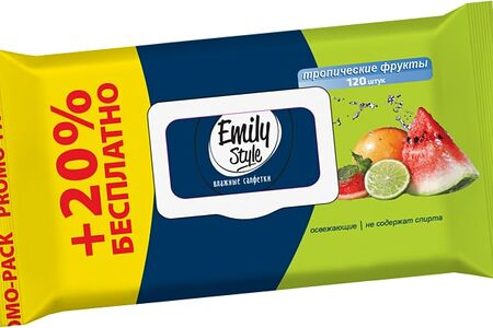 Салфетки влажные Emily Style Тропические фрукты 120шт универсальное средство для повседневной гигиены по выгодной цене! Салфетки, изготовленные из мягкого, приятного на ощупь материала, эффективно очищают кожу от различных загрязнений, оставляя ощущение свежести и ненавязчивый фруктовый аромат. Пропитывающий лосьон без спирта дарит коже деликатный уход, не нарушая естественный ph-баланс. Влажные салфетки пригодятся вам в любом месте: дома, в дороге, на даче, на пикнике, на прогулке с ребенком. Упаковка оснащена удобной крышкой, что облегчает использование и позволяет предотвратить пересыхание.