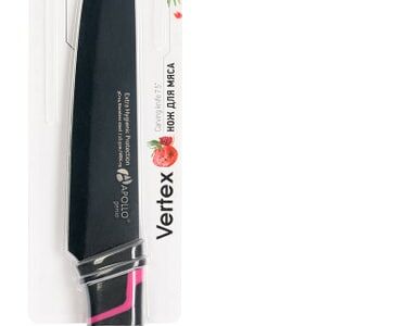 Нож предназначен для нарезки овощей, фруктов, мяса, рыбы, колбас, хлеба и других продуктов. Лезвие ножа Vertex имеет стойкое покрытие, которое уменьшает контакт продуктов со сталью, предотвращая процесс окисления и помогая сохранить полезные свойства продуктов. Специальная форма рукоятки не позволяет ножу выскальзывать из руки во время использования. Материалы изготовления: нержавеющая сталь 3Cr14, пищевой пластик PP. Длина лезвия — 18,5 см.