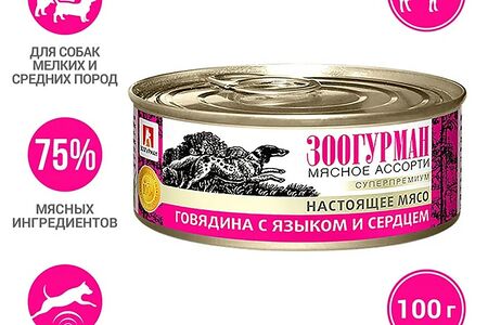 Влажный корм для собак Зоогурман Мясное ассорти Говядина с языком и сердцем 100г доставка