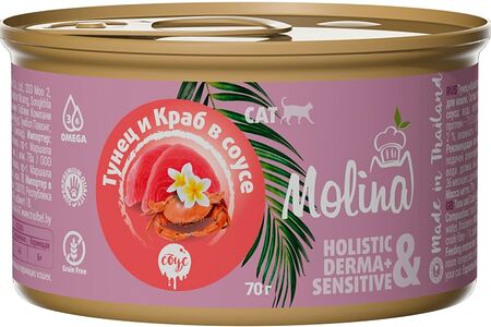 Влажный корм для кошек Molina Тунец и краб в соусе 70г доставка