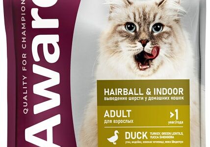 Сухой корм для кошек Award Hairball & Indoor для выведения шерсти с уткой и индейкой с добавлением зеленой чечевицы и Юкки Шидигера 1.5кг доставка