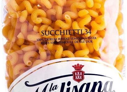 Макароны La Molisana Succhietti №34 450г - это макаронные изделия из итальянского региона Молизе (отсюда и название бренда). Они производятся из лучших сортов пшеницы и чистейшей горной воды, которая спускается с вершины горы Матезе. Традиционный способ приготовления Trafilatura classico (продавливание теста через специальные тефлоновые формы) делает поверхность пасты рифленой, благодаря чему она хорошо удерживает соусы. Такие пружинки рекомендуется варить 8 минут и подавать с густыми соусами с кусочками или использовать для приготовления салатов.