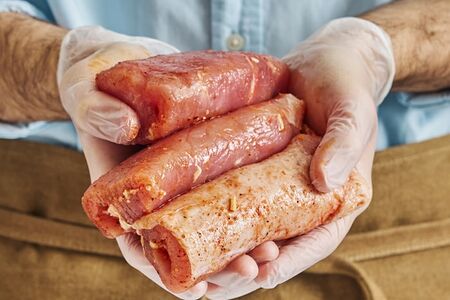 Свинина фаршированная сыром и грибами – охлажденные рулетики, приготовленные профессиональными поварами. В их состав входят только отборные ингредиенты: свежее мясо, грибы, сыр и специи. Изделия можно обжарить на сковороде, запечь в духовом шкафу или потушить – в любом случае получится аппетитно, вкусно и сочно! Блюдо отлично подойдет как для обычного семейного обеда, так и для праздничного стола. Полуфабрикаты от Vprok.ru – отличное решение для людей, живущих в активном ритме. С ними вы сможете питаться вкусно и полноценно, но при этом сэкономите массу времени и сил. Правильная температура в кулинарном цеху и автомобилях доставки позволяет сохранить свежесть, полезные свойства и исключительные вкусовые качества продукции.