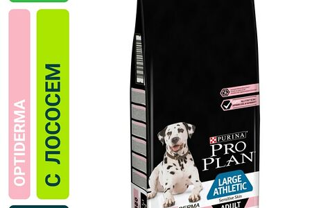 Сухой корм для собак Pro Plan Optiderma Large Athletic Adult Sensitive Skin для крупных пород атлетического телосложения для здоровья кожи и шерсти с лососем 14кг доставка