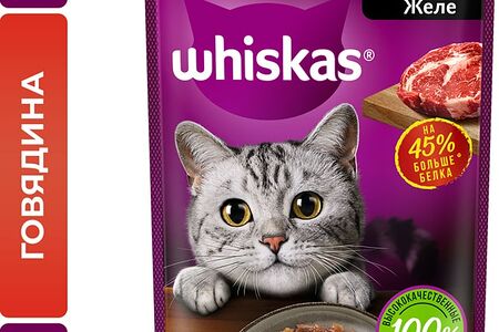 Влажный корм для кошек Whiskas Мясная коллекция желе с говядиной 75 г — аппетитные кусочки с притягательным вкусом мяса и особой волокнистой текстурой, позитивно влияющей на пищеварение. Продукт с высоким содержанием белка и сбалансированной формулой, учитывающей повседневные потребности кошек в питательных веществах, необходимых для полноценного развития, упакован в порционные пакетики. Не содержит усилителей вкуса и консервантов. Следите за тем, чтобы в миске питомца всегда была свежая вода. Рекомендовано для взрослых кошек от 1 года, ведущих умеренную активность. Подходит для стерилизованных животных.