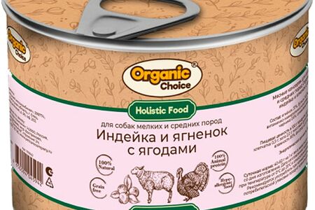 Влажный корм для собак Organic Сhoice для мелких и средних пород индейка и ягненок с ягодами 240г доставка