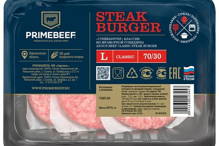 Котлеты для бургера Праймбиф из мраморной говядины 390г доставка