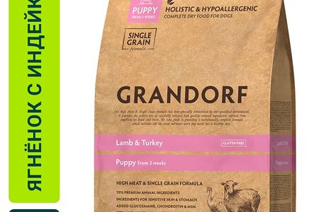 Сухой корм для щенков Grandorf Puppy c ягненком и индейкой 3кг доставка