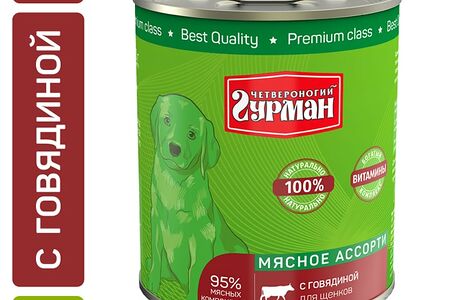 Корм консервированный для щенков Четвероногий гурман Мясное ассорти с говядиной 340г доставка